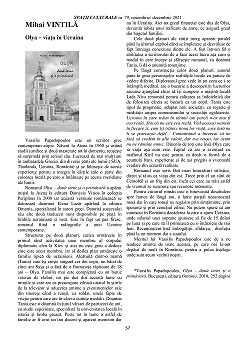 Despre romanul Olya – două ierni şi o primăvară scris de Vassilis Papadopoulos public o recenzie în revista din Rm.Sărat - Spații Culturale nr 79, noiembrie-decembrie 2021. Nodulul meu critic se intitulează Olya – viața în Ucraina.